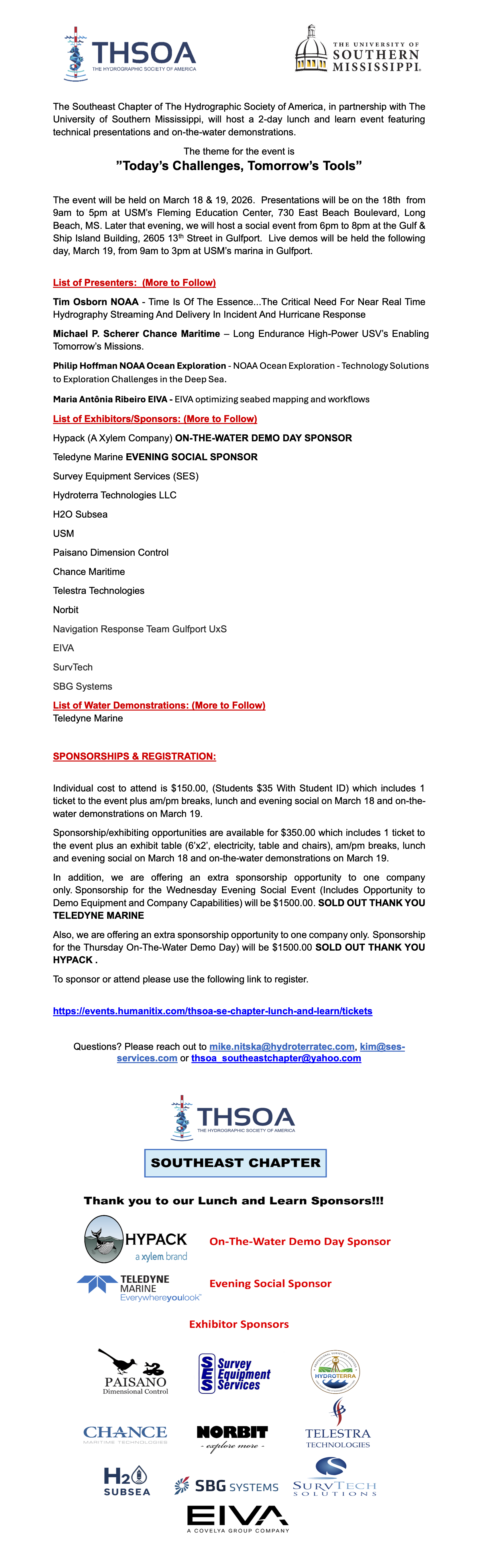 THSOA SE Chapter and USM - TECHNICAL LUNCH AND LEARN ”Today’s Challenges, Tomorrow’s Tools”